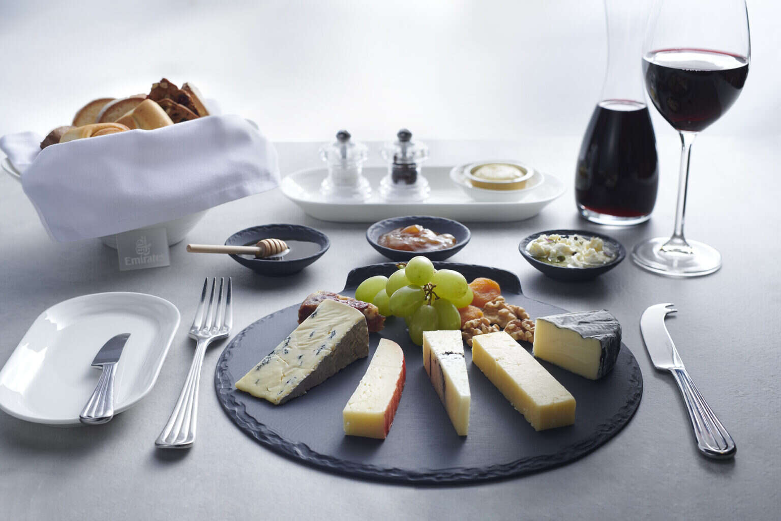 機上常備 Dom Pérignon 與 Krug 香檳,每瓶市價約 230 至 270 美元。奢華與多樣性的結合,使 Emirates 成為高空 Fine Dining 的代表之一。