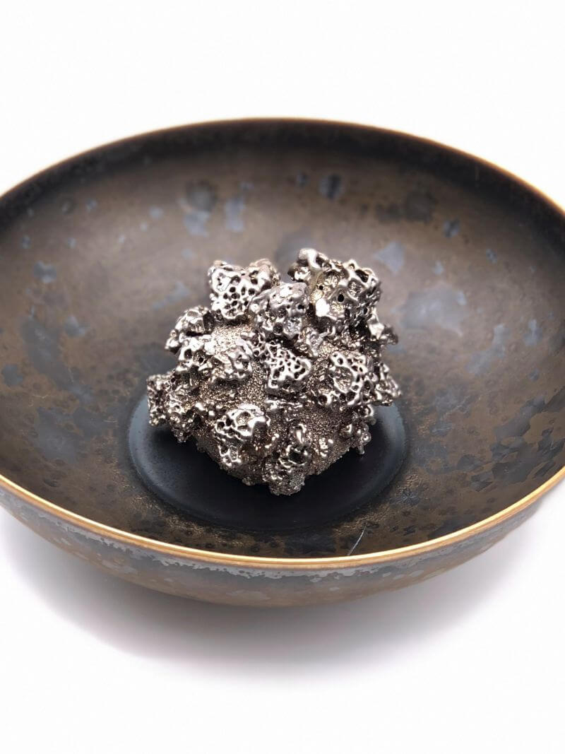 年僅 28 歲的 Pablo Gicguel 加入巴黎克里雍酒店團隊僅短短數月,便已創造出令人驚艷的甜點。其中,「赤鐵礦」(L’Hematite)是他最具代表性的作品之一——一顆外觀酷似礦石的巧克力球,內藏熔岩焦糖內餡,口感濃郁醇厚。
