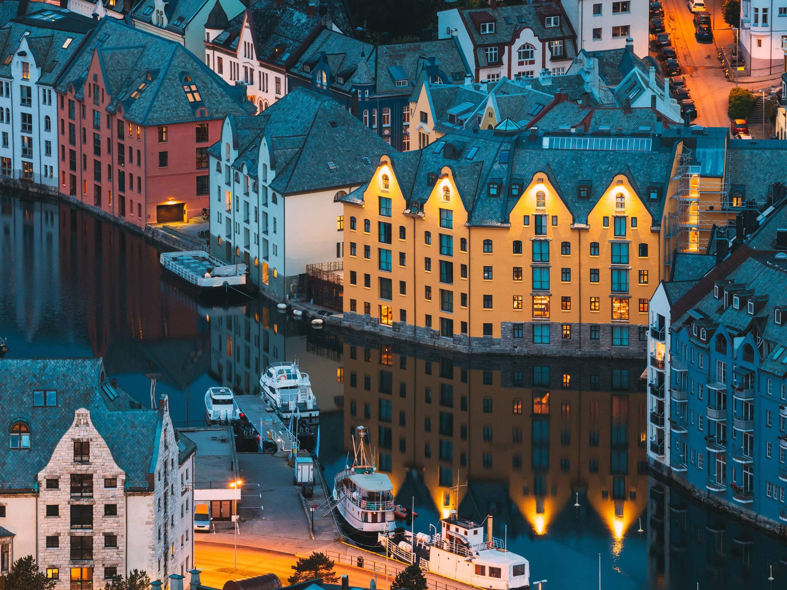 奧勒松以裝飾性的塔樓、粉彩色建築和優雅的建築倒映在平靜的港灣中,歡迎您來到這座世界上最美麗的新藝術風格城市之一。這座城市結合了自然與人造之美,位於壯麗的峽灣景觀中。幾乎每座建築都展示著獨特的細節和奇異的風格。1904年大火後重建,奧勒松如今是一座獨特的歷史瑰寶。漫步在童話般的鵝卵石街道上,欣賞精緻的塔樓和裝飾細節,並登上Aksla觀景台,俯瞰這座城市及其群島的夢幻景色。品嚐一口挪威奶油鬆餅Svele,或在舒適的餐廳享用豐盛美食。奧勒松以海洋貿易為基礎,出產的鹽漬鱈魚(Klipfish)占全球供應量的三分之二。