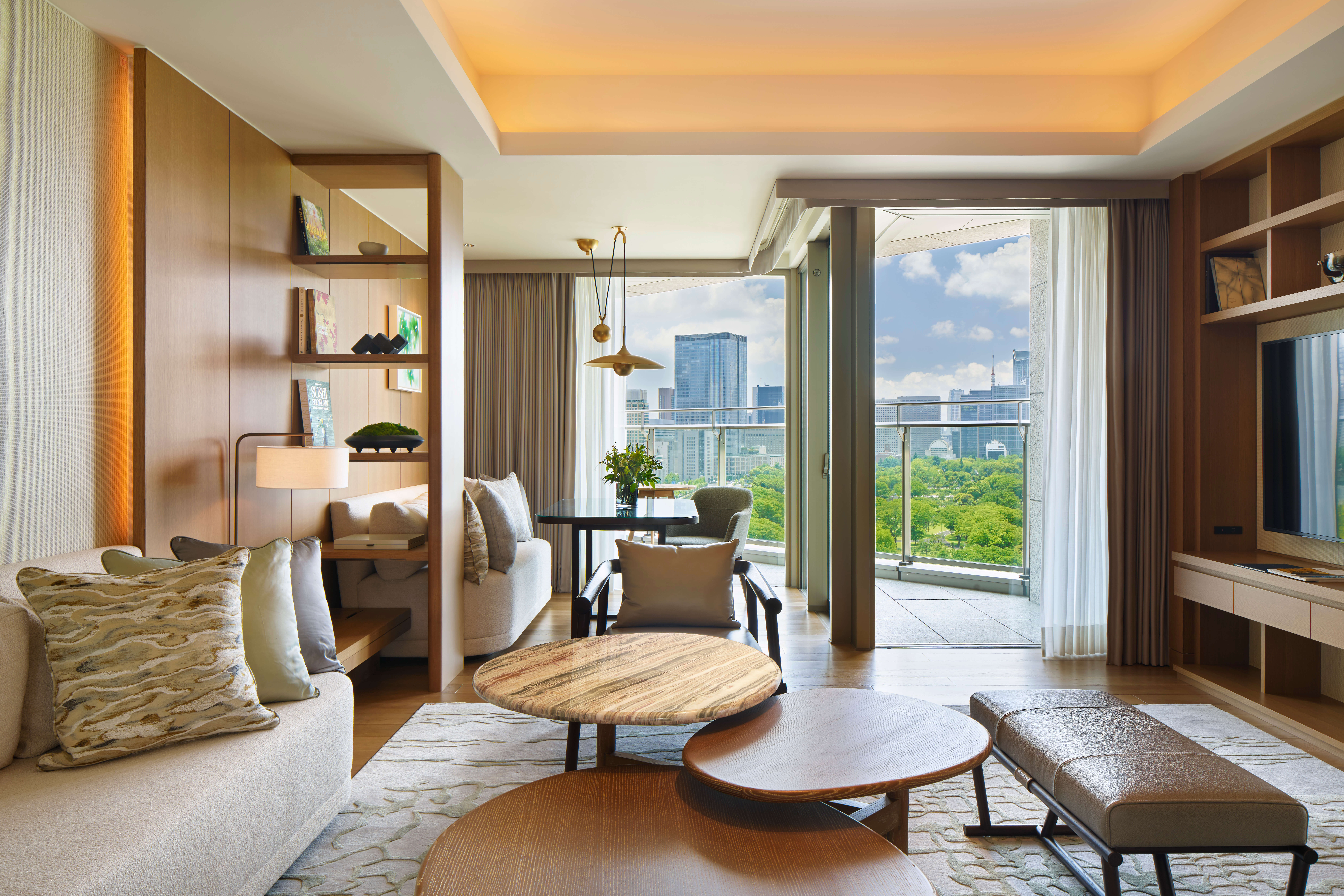 東京皇宮酒店的頂級套房,設計如同別緻的都市住宅,採用樸實的色調,並以現代家具和精美的紡織品和藝術品裝飾。