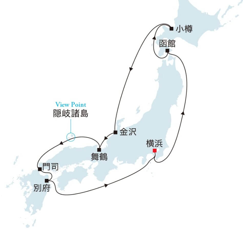 横浜-函館-小樽-金沢-舞鶴-門司-別府-横浜